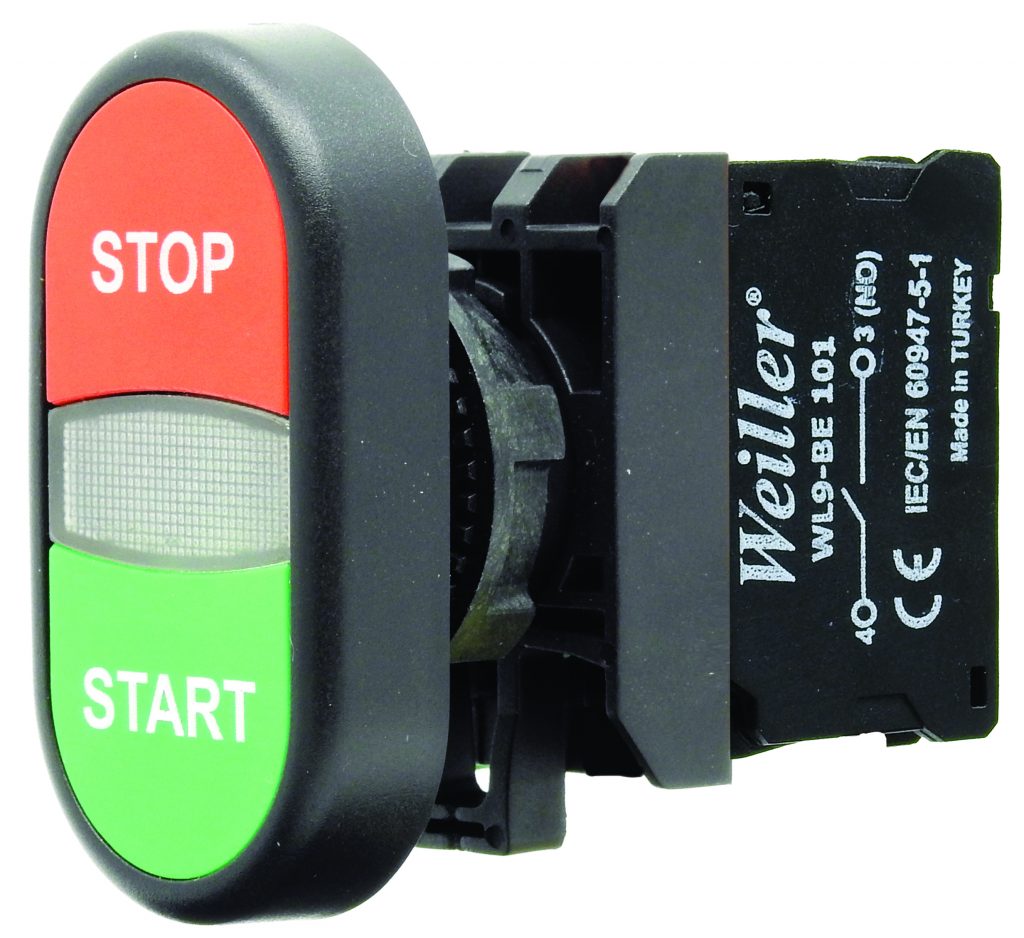 22mm Plastik Start Stop Yazılı ikiz Buton (1NO/1NC)